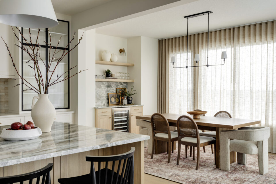 The home features an elegant palette of enduring finishes such as natural stone, quartz and light oak, complemented by a mix of tactile fabrics and subtle textural elements. Together, these choices create interiors that feel effortlessly cozy, refined, and enduringly chic ā a true reflection of the client’sā lifestyle and the home’s architectural integrity.